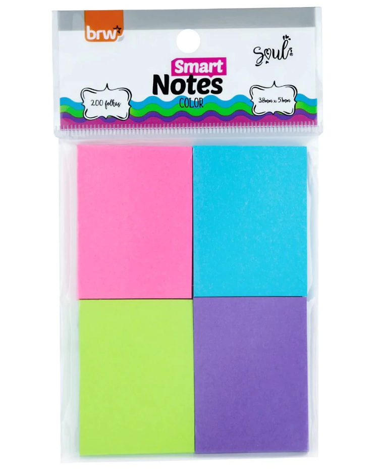 O Bloco Smart Notes Color da BRW é ideal para organizar suas anotações com estilo. Cada unidade vem com 4 blocos coloridos de 50 folhas cada, perfeitos para estudos, recados ou uso diário.