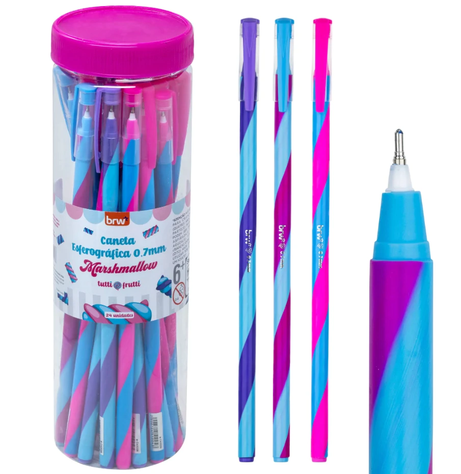 Palavras-chave para SEO: caneta marshmallow BRW, caneta corpo colorido, caneta 0.7mm, papelaria fofa atacado, caneta para revenda, caneta pastel BRW.