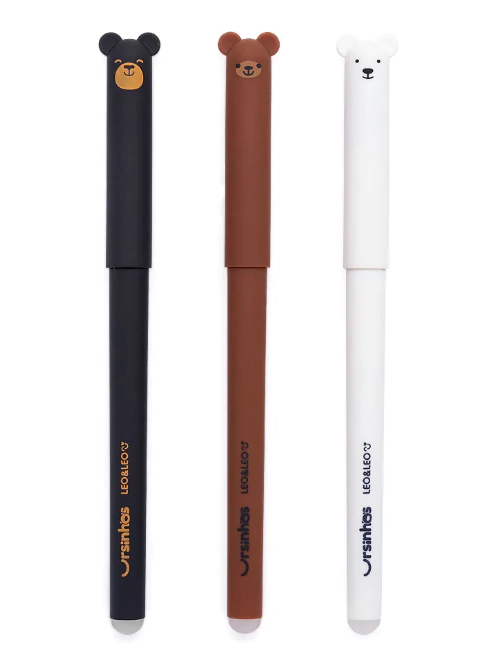 Kit 3 Canetas Apagáveis Gel 0.7mm Ursinhos – Leo&Leo