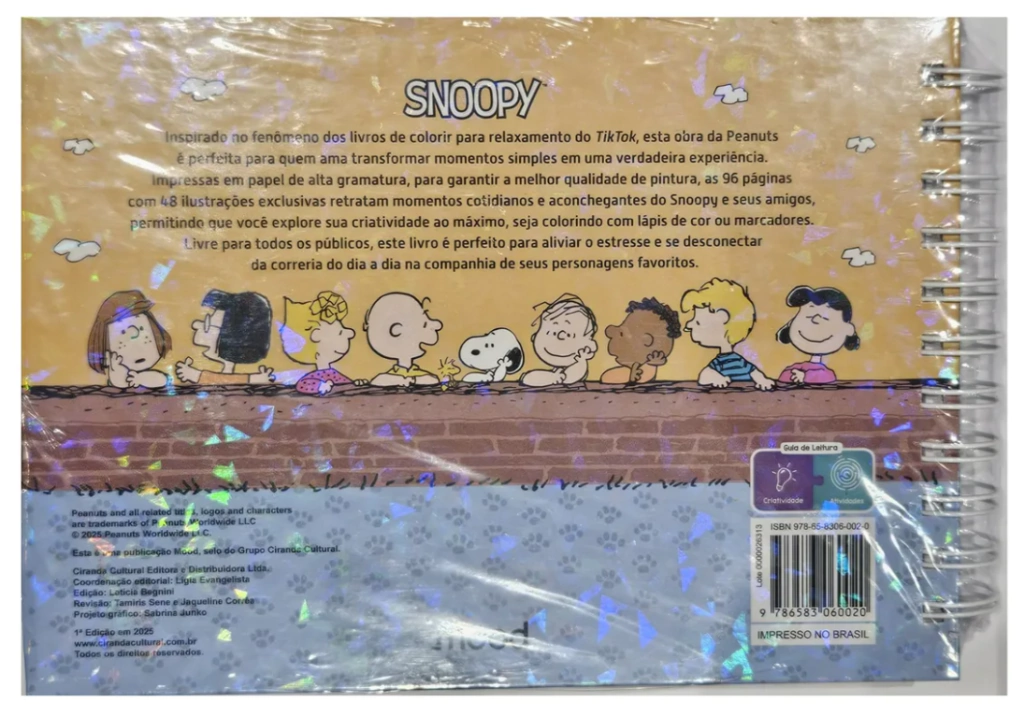 Ideal para pintar, relaxar, decorar, colecionar ou presentear, o livro conta com capa dura, acabamento premium e ilustrações adoráveis, tornando-se uma verdadeira joia para fãs de Snoopy e amantes de papelaria criativa.