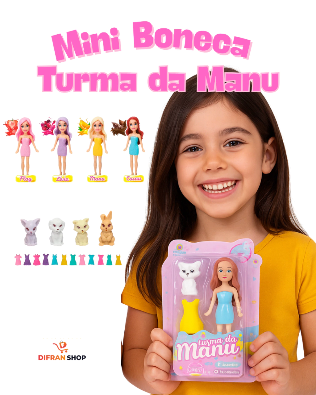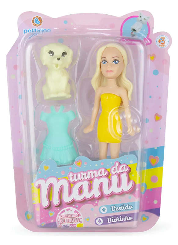 A coleção de mini bonecas Turma da Manu estilo Poly oferece quatro modelos encantadores: Flay, Lívia, Cacau e Manu. Cada boneca vem acompanhada de um adorável bichinho e um lindo vestido para horas de diversão criativa. Além disso, todas as bonecas são perfumadas com um delicioso cheirinho de fruta, adicionando um toque especial à brincadeira. Estas mini bonecas são perfeitas para colecionar e estimular a imaginação das crianças de forma encantadora.